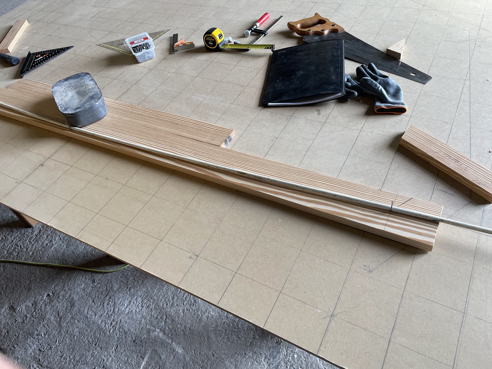 The top side of frame C turned out to be one of the trickiest pieces so far: wide, curved, and with a new width of 45mm. The first step was drawing everything on the 10cm board I had cut earlier.